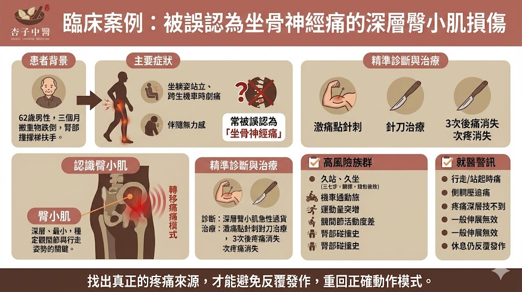 1 月 30 2026 被誤認為坐骨神經痛的患者—-受傷的神祕深層肌肉? 發佈留言 / 診所專欄 × 專業分享 / 陳 韋安 醫師 患者背景: 62歲男性,三個月前因搬重物跌倒,臀部撞擊樓梯扶手。 主要症狀: 特定動作疼痛: 從坐/ 被誤認為坐骨神經痛的患者—-受傷的神祕深層肌肉? 閱讀全文